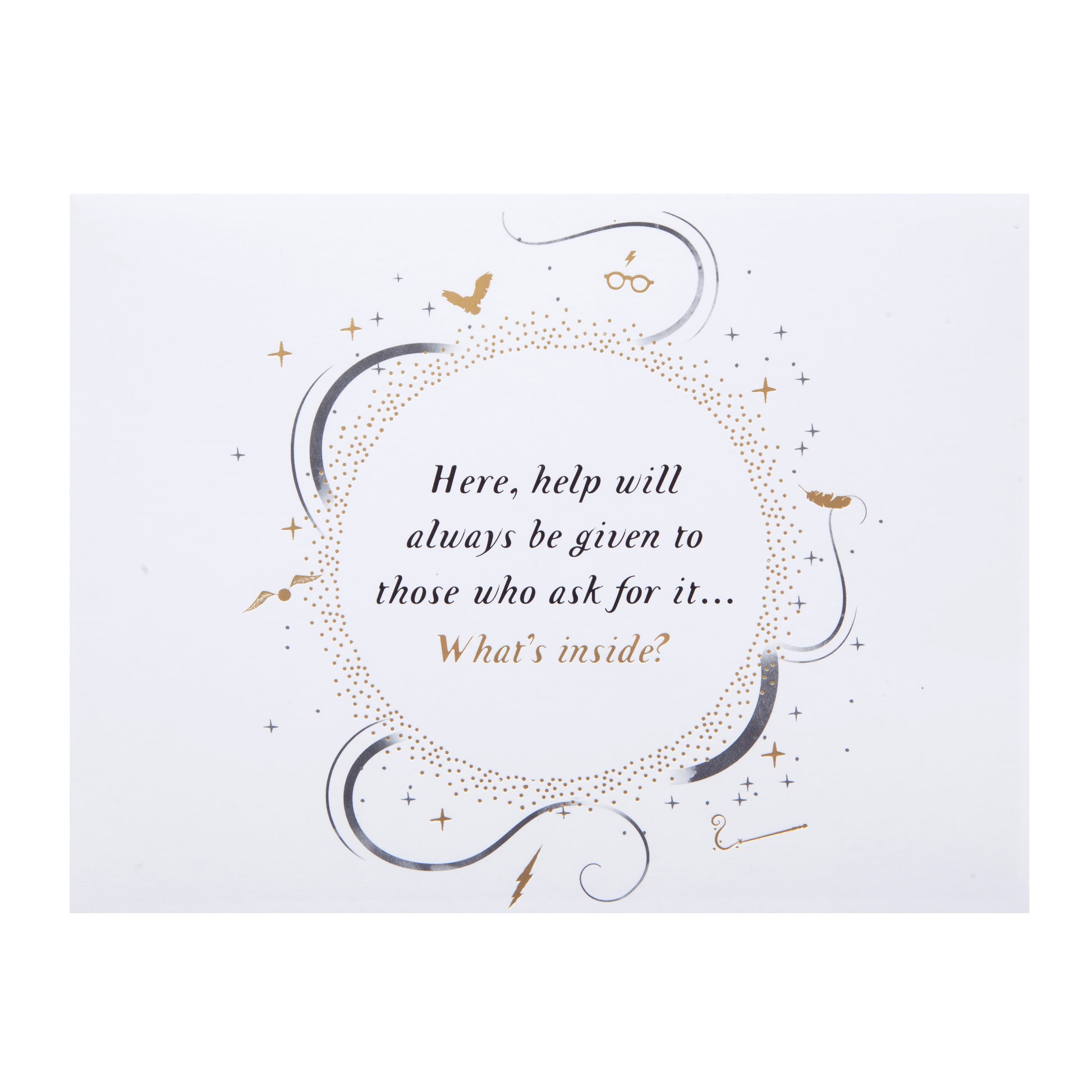 Our Harry Potter Hogwarts Castle Pop Up Card is the perfect gift for a Harry Potter fan! The beautifully gold foiled cover reads "Here, help will always be given to those who ask for it...What's Inside?' eluding to the magic that awaits inside.