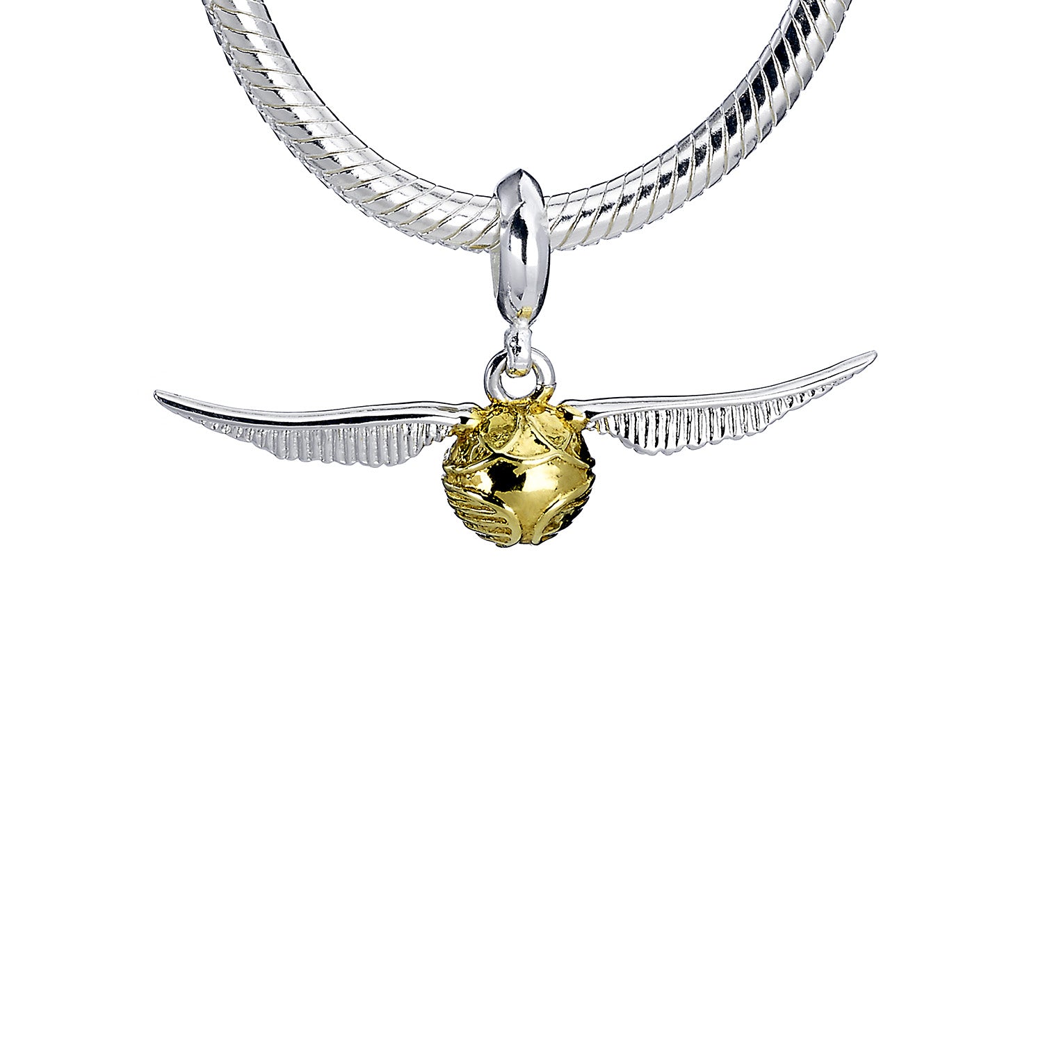 The Golden Snitch determined whether a Quidditch match was won or lost. The height and width of this charm are approximately 20 mm and 40 mm. This charm is packaged in a box bearing the Harry Potter logo. Our Harry Potter charm bracelets will work with this charm. The charm is made of 925 Sterling Silver and has gold plating on the snitch's ball.