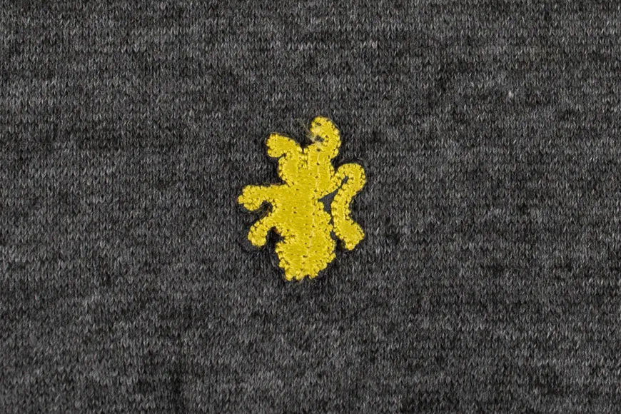 Burgundy stripes on sleeves of herringbone fabric