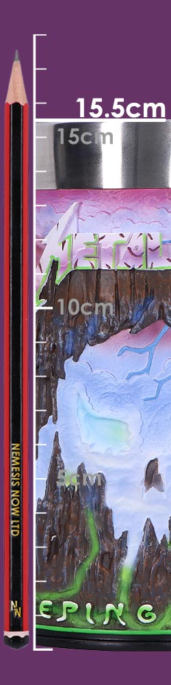 Raise a toast to Metallica with the Creeping Death Tankard, an intricately designed tribute to the iconic 1984 single from their Ride the Lightning album. Featuring detailed artwork inspired by the Angel of Death, this tankard is crafted from high-quality resin and expertly hand-painted, with a removable stainless steel insert for easy cleaning. Packaged in a Nemesis Now Metallica-branded, fully recyclable gift box, this is the perfect addition to any heavy metal fan's collection. Whether you're a die-hard Metallica fan or simply love bold, dark accessories, this tankard is the ultimate drinking vessel and display piece.