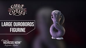 The Large Cult Cuties Ouroboros figurine is a bold and symbolic decor piece perfect for fans of gothic mythology or alternative aesthetics. Crafted from durable resin, it features a serpent devouring its own tail, an ancient symbol of eternity, finished in striking black scales, silver accents, and a pentagram embellishment. It comes safely packaged in a Nemesis Now Cult Cuties-branded box, ideal for gifting and displaying. Whether you're into witchcraft, dark fantasy, or just love unique art, this figurine is a powerful addition to your space and an eye-catching piece you'll be proud to show off.