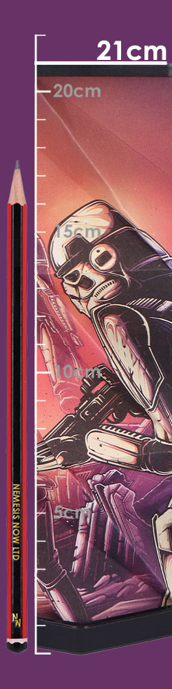 - Compact, collapsible design, energy-efficient LED light, a dimmable feature for different lighting and vibrant, high-quality Stormtrooper artwork.