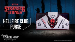 - Sleek and stylish purse embossed with the iconic Hellfire Club emblem from Stranger Things, blending fandom with fashion.