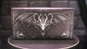 - A striking gothic-inspired purse designed with bold dragon scale embossing and mystical motifs.
