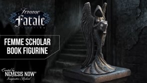 The Femme Fatale Book Figurine is an original Nemesis Now design that captures dark elegance and mystery in one striking piece. Cast in high-quality resin and hand-painted in matte black, it features a faceless, hooded woman with angel wings, holding a book adorned with a skull. Delicate flower accents on her flowing black robe add a hauntingly beautiful touch. Packaged in a branded box with protective inner packaging, its perfect for gothic art lovers, fantasy collectors, or anyone drawn to the mystical and macabre. Bring a sense of dark enchantment to your space with this captivating figurine.