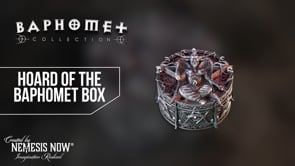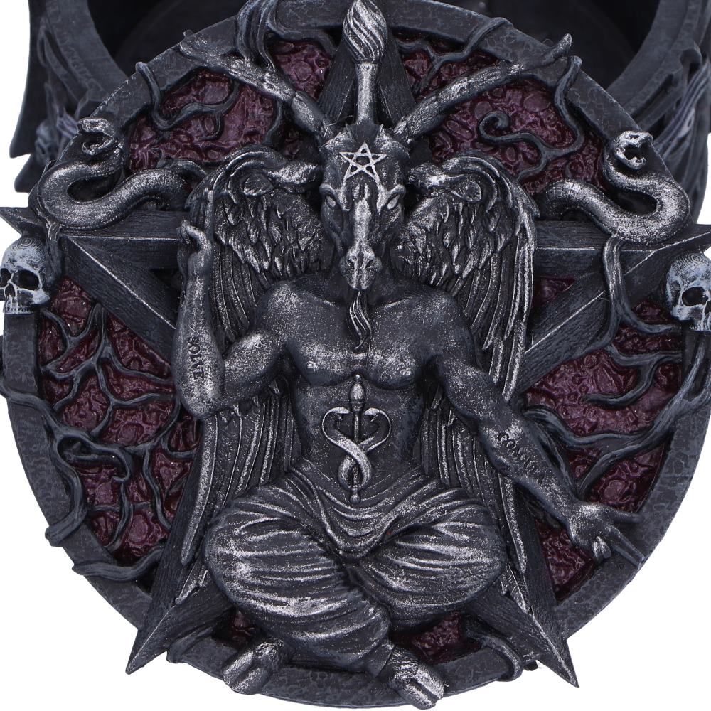 Unveil the mystique with the "Hoard of the Baphomet" trinket box by Nemesis Now. This exquisite round box features a commanding Baphomet on the lid, encircled by serpents, skulls, and arcane symbols, all cast in high-quality resin and meticulously hand-painted to capture every detail. Deep enough to safeguard your most cherished treasures, it offers both practicality and a touch of gothic grandeur. Perfectly packaged in a Nemesis Now branded gift box, it makes an exceptional gift for enthusiasts of the occult and collectors of the macabre. Elevate your decor with this stunning fusion of art and utility.