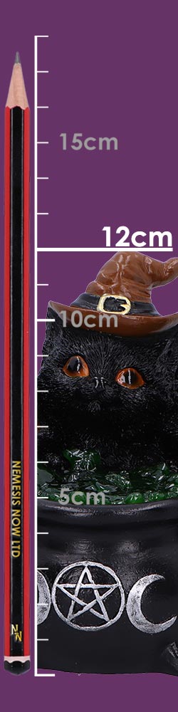 Introducing Kindle's Potion, a bewitching ornament perfect for cat lovers and fans of all things magical. This enchanting piece features five mischievous black cats donning witch hats, gathered around a glowing cauldron filled with a magical potion. Crafted from high-quality resin and meticulously hand-painted, each ornament is a unique treasure from Nemesis Now's exclusive cat decor range. With its illuminating potion requiring just 2 AA batteries, Kindle's Potion brings a touch of mystical charm to any space. Arriving securely encased in a protective polystyrene cover and boxed for safe delivery, its the ideal addition to your collection or a spellbinding gift for a fellow enthusiast.