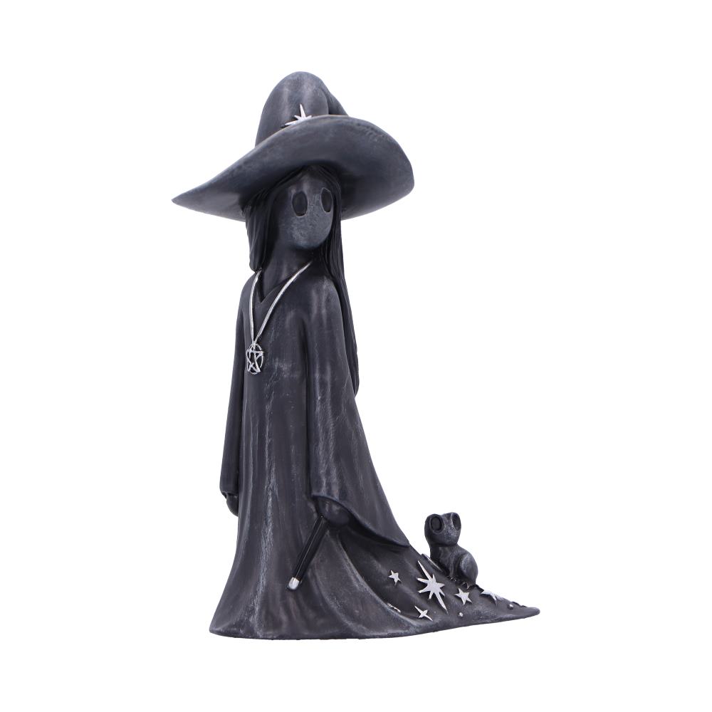 The Little Souls Sparkle Figurine by Nemesis Now is a charming collectible that captures the magic and mysticism. Featuring a black witch soul posed in an elegant stance with a small frog clinging onto the robe. Packaged in a beautifully designed Little Souls Nemesis Now gift box, it's perfect for fantasy collectors, gothic boutiques, or anyone who wants to add a touch of whimsy to their space. Bring home a little magic and let your imagination sparkle.