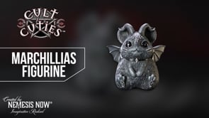 Introducing the enchanting Cult Cuties Marchillias, a delightful figurine inspired by the charming chinchilla, now with a whimsical twist. This adorable creature features menacing horns, bat wings, and a collar adorned with a silver skull, blending cuteness with a hint of gothic allure. Perfectly packaged in a Nemesis Now Cult Cuties branded gift box, Marchillias sits securely within a protective foam insert, topped with luxurious red felt. The box's see-through window ensures this unique piece is displayed beautifully. Ideal for collectors and lovers of gothic and witchy decor, Marchillias also makes a perfect gift. Let the charm of Marchillias grace your collection and decor today!