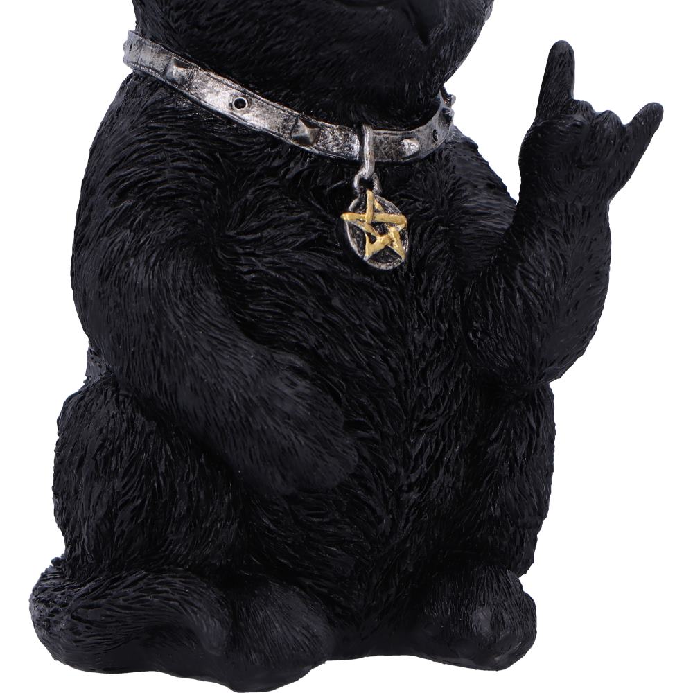 Meet Metallicat, the ultimate fusion of feline flair and rock 'n' roll attitude! This striking black cat figurine, expertly cast in resin and hand-painted with meticulous detail, strikes the iconic hand sign of the horns a symbol of defiance and rock spirit. Perfect for cat lovers and metal fans alike, Metallicat makes a standout gift for rockers of all ages and an electrifying addition to any cat or rock band collection. Whether you're enhancing your rock music memorabilia or adding a unique twist to your feline figurines, Metallicat is sure to bring a touch of rebellious charm to your space.