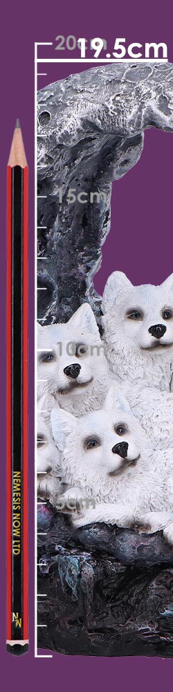 Introducing Moon Litter, a stunning ornament that showcases a delicate litter of five white wolves perched gracefully upon a crescent moon. Expertly cast in high-quality resin and meticulously hand-painted, this enchanting piece brings a touch of mystical elegance to any collection. Each ornament is carefully hand-selected and arrives in protective packaging to ensure it reaches you in pristine condition. Ideal for wolf enthusiasts and fantasy aficionados alike, Moon Litter is a captivating addition to any figurine collection, blending artistry with the allure of the wild.