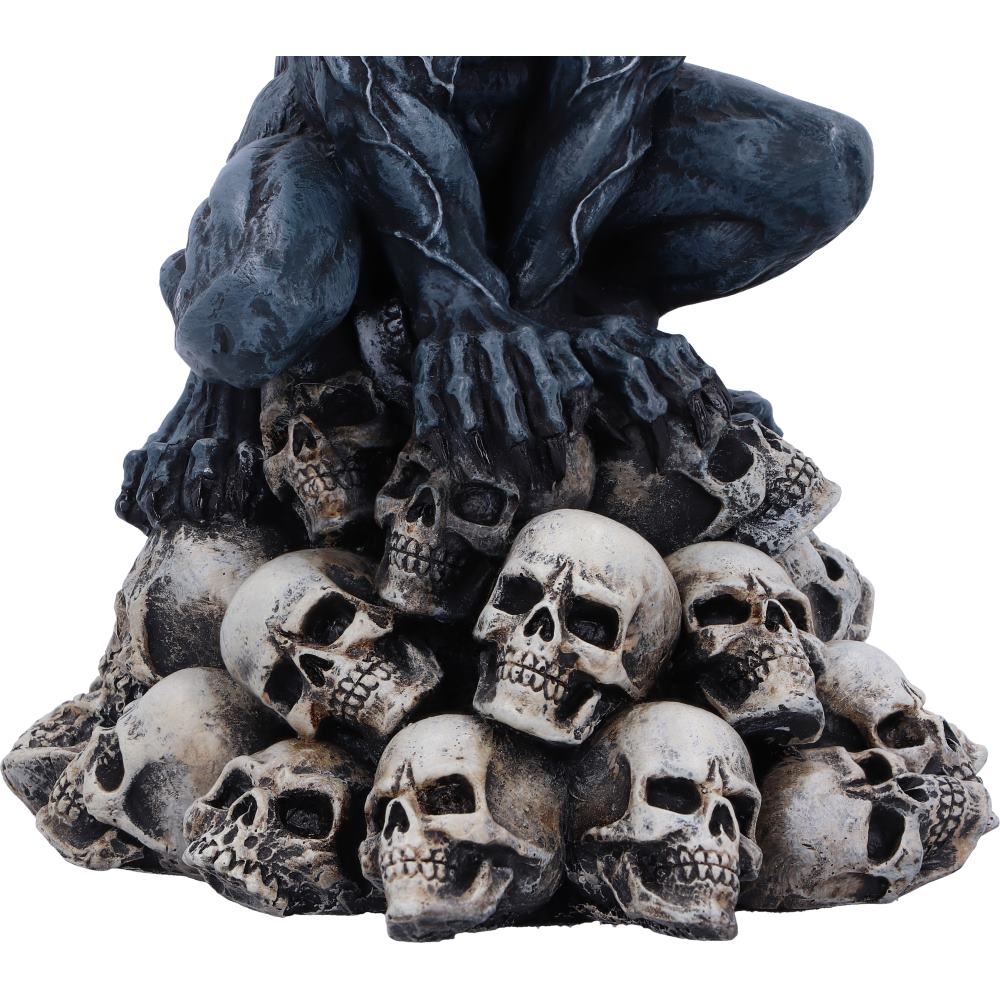 Seen perched on top of a pile of skulls, this werewolf is ready to pounce, with gnarled teeth and an angry expression, intimidating all those that pass by. Cast in the finest resin before being expertly hand-painted, this figurine is a must-have addition to any alternative store or werewolf collection.