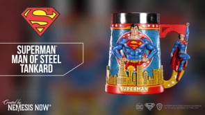 Elevate your celebration of truth, justice, and the American way in true heroic style with our Officially Licensed Superman Tankard. This remarkable tankard showcases the Man of Steel standing tall in his iconic suit, set against a vibrant yellow city skyline, a symbol of hope and strength. But the true magic lies in the handle, where Superman takes flight with a triumphant 'Up, Up and Away!' Crafted from the finest resin and adorned with expert hand-painted detailing, this Superman Tankard is an absolute must-have for all DC and comic enthusiasts. Raise your glass to the superhero within and add this extraordinary piece to your collection today!