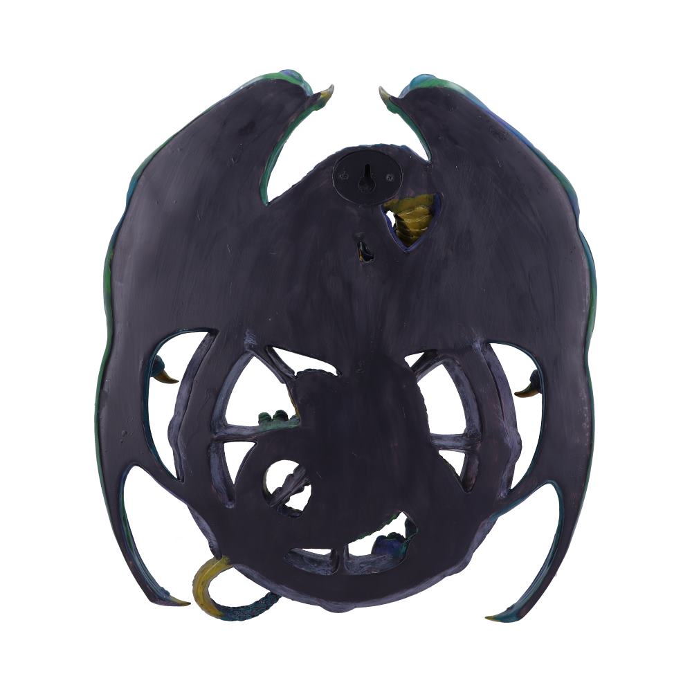 This majestic Emerald Dragon plaque was formulated in the mind of world-class Fantasy artist Anne Stokes and is from alternative brand Nemesis Now's giftware collection. Celebrating the Pagan representation of the annual cycle of seasonal festivals, this Wheel of the Year has carefully chosen symbols to illustrate the year's chief solar events (solstices and equinoxes) and the midpoints between them. Protruding from each of these symbols, a spoke appears, connecting them to the central pentagram. Between the spokes, we see the emerald scales and yellowed underbelly of a magnificent Dragon who climbs up to peek over the top of the wheel. Imaginatively crafted and expertly detailed, this piece is perfect for any Dragon enthusiast who seeks to honour their Pagan traditions.